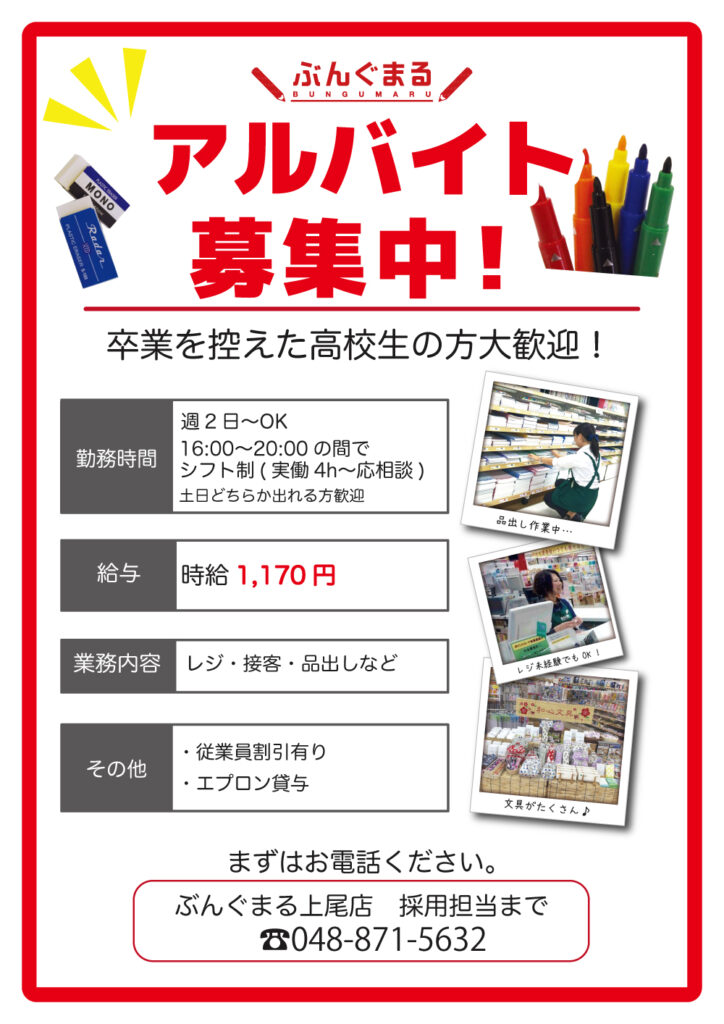 ぶんぐまる上尾店ではスタッフを募集しております。